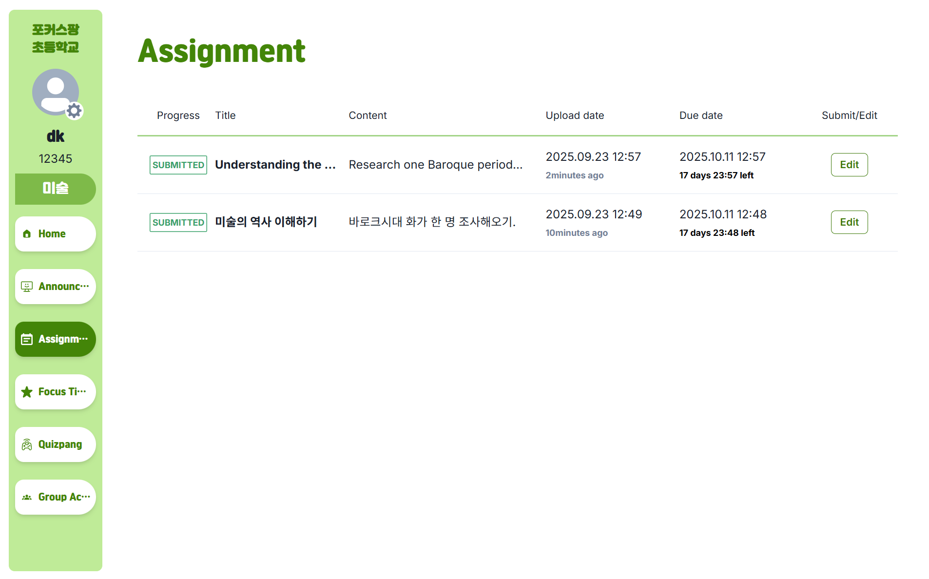 π Main Page β Click the class in the timetable β Click [Assignment] on the left sidebarβ