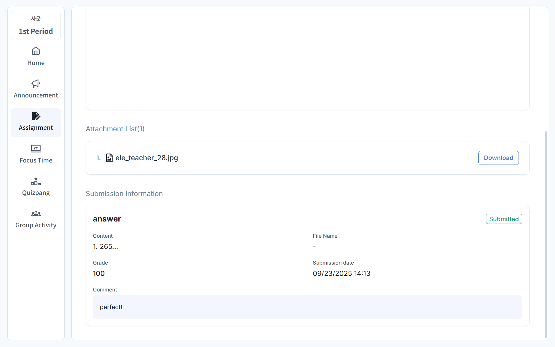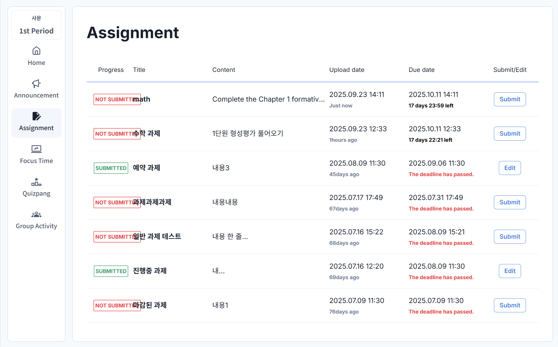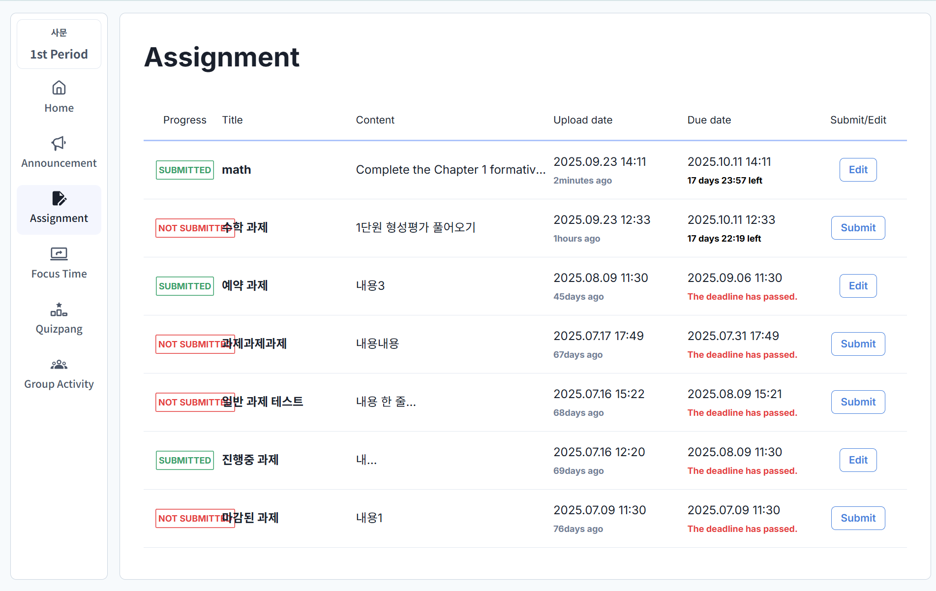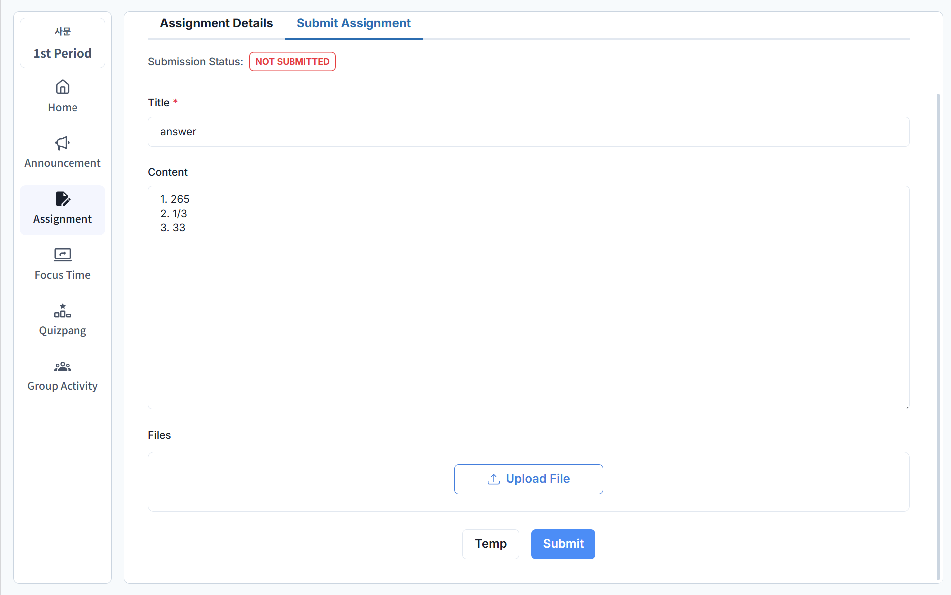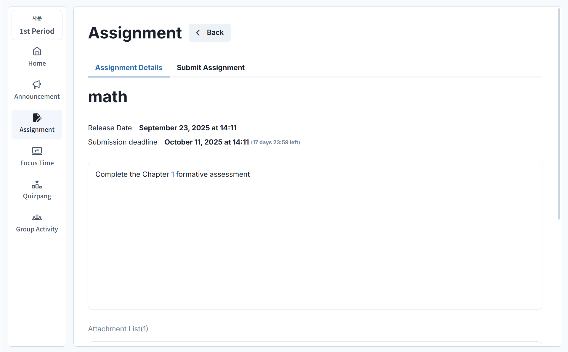 πŸ“ Main Page β†’ Click the class in the timetable β†’ Click [Assignment] on the left sidebar​